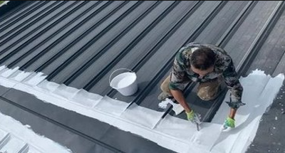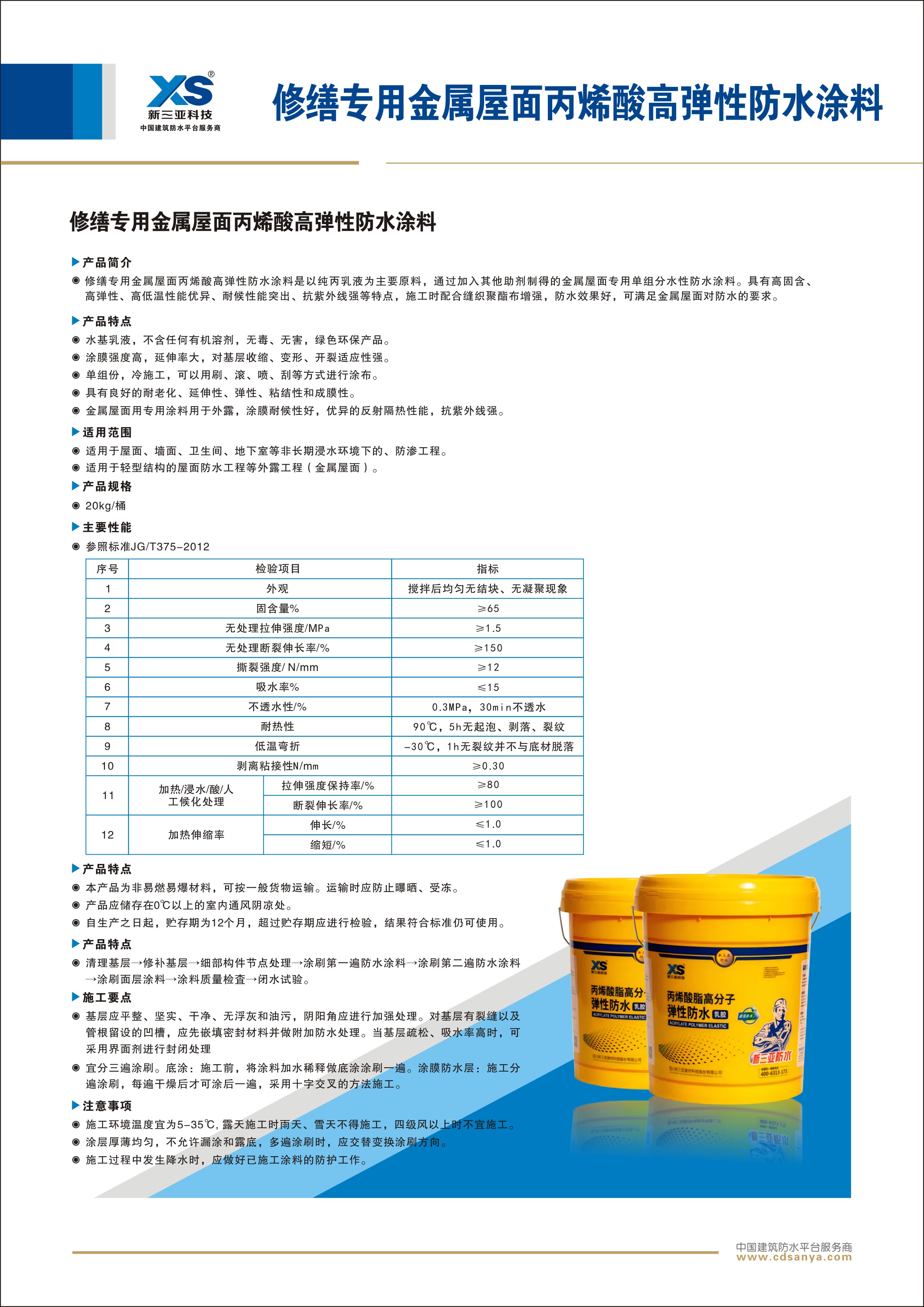 修繕專用金屬屋面丙烯酸高彈性防水涂料是以純丙乳液為主要原料,通過加入其他助劑制得的金屬結(jié)構(gòu)專用單組分水性防水涂料。具有高固含、高彈性、高低溫性能優(yōu)異、耐候性能突出、抗紫外線強(qiáng)等特點,施工時配合縫織聚酯布增強(qiáng),防水效果好,可滿足金屬屋面對防水的要求。